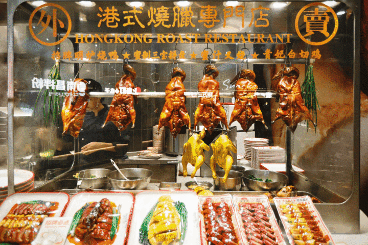 粤兴隆港式烧腊店烧鸭饭里的烧鸭肥而不腻,肉质鲜嫩,外皮香脆,配上卤水可以说是恰到好处,另外再提一句,这家店挂在壁橱玻璃窗里的烤鸭看起来超级诱人,鸭子的外皮烤得油亮酥脆,远远就能闻到香气。