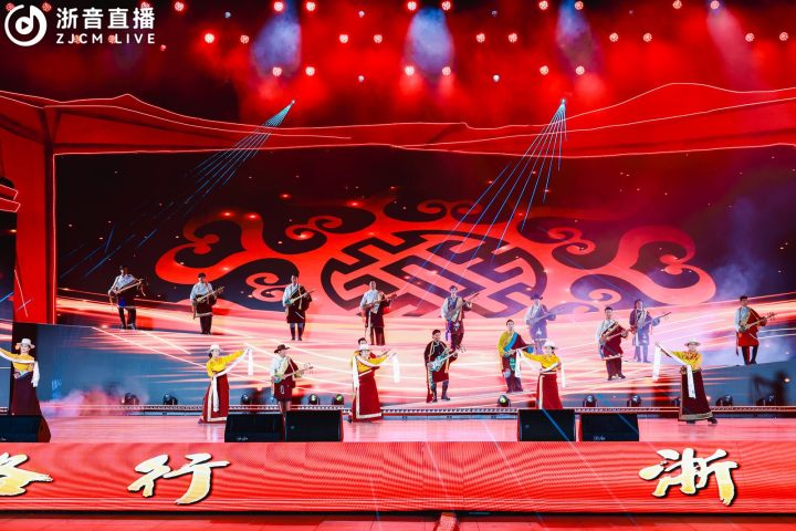 “诗画浙江”遇上“大美青海”,携手绘就江山锦绣;“四溢茶香”邂逅“戈壁绿洲”,共话浙青山海之情。8月6日晚,“宋韵丝路行 浙青一家亲”庆祝海西蒙古族藏族自治州成立70周年文艺晚会在海西州德令哈市奥运广场隆重上演。晚会由浙江省援青指挥部、海西州委、海西州人民政府、浙江音乐学院共同主办。中央有关部门祝贺团、青海省党政军代表团、海西州四大班子领导,以及浙江音乐学院相关领导出席并观看晚会。晚会现场16000余名海西州群众观看演出,人民日报、中国蓝等20余家媒体平台进行直播,线上累计观看人数超过880万。
