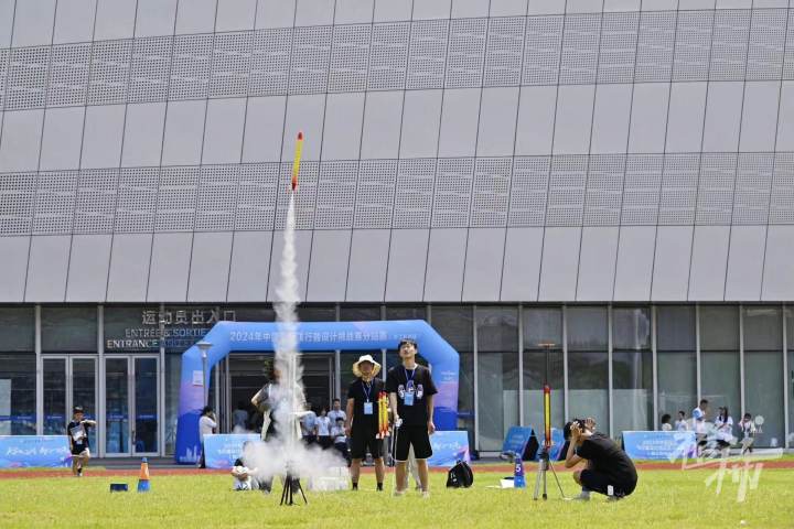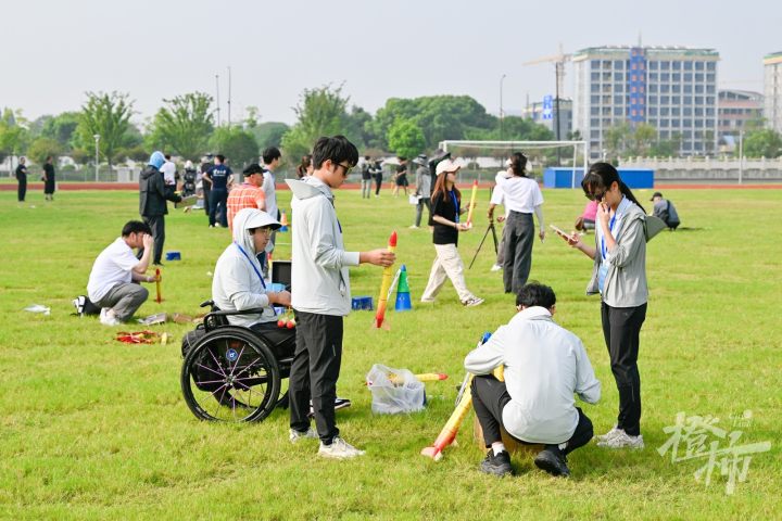 一次次试飞,一遍遍记录飞行数据,调整完毕再重飞……烈日下一练就是一下午,为的就是打磨细节。“这个(带降、伞降模型火箭发射)项目分为很多步骤,每个步骤又有很多的细节,稍不注意,就会对发射产生很大的影响。在一次一次失败中积累经验,才能做出最完美的作品。”李嘉成说,“这次参赛,希望能够拿到好成绩,同时也是为后续的比赛积累经验。”