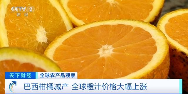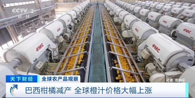 总台记者 雷湘平:巴西是世界上最大的橙汁产品出口国,供应全球市场超过七成的橙汁产品。但近期该国柑橘产量大幅下跌,已导致全球橙汁产品的价格快速上升。