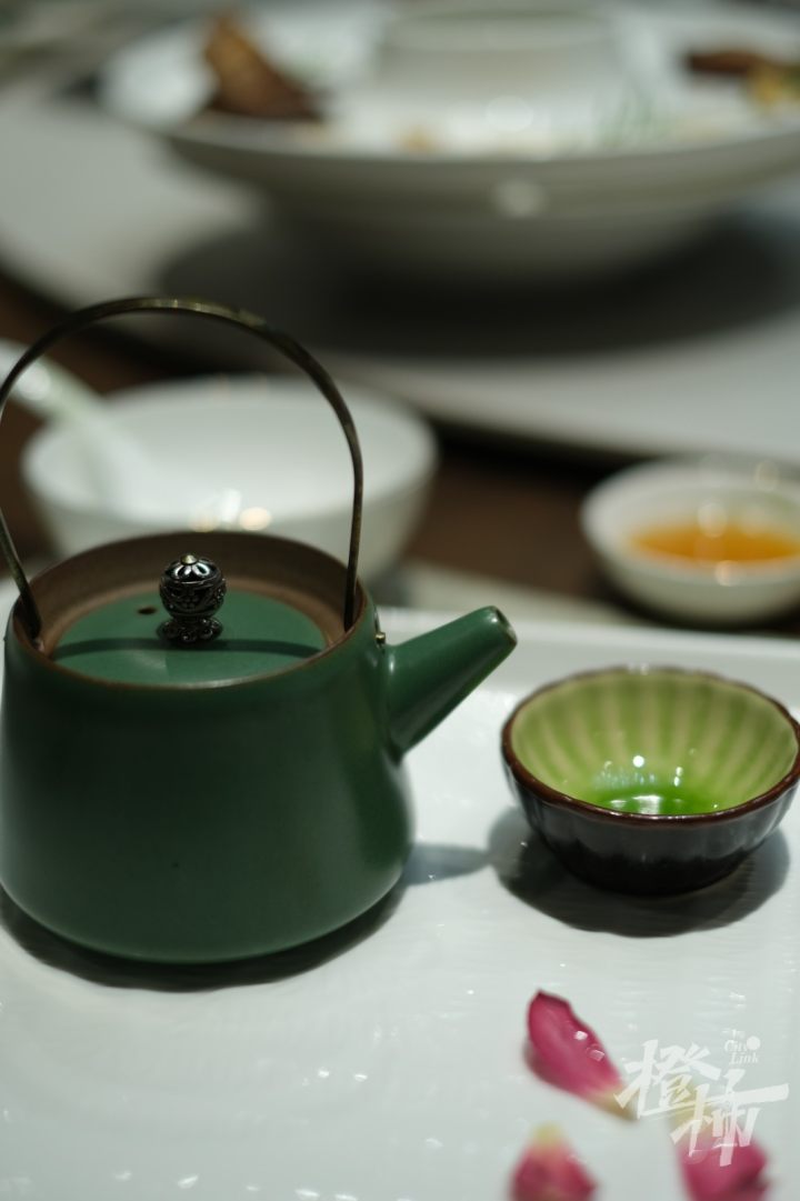因为店名带茶,茶聊日式昆布海鲜汤就是盛在青瓷茶壶里的,每一次将汤水从茶壶倒向小茶杯,都觉得自己忒优雅。