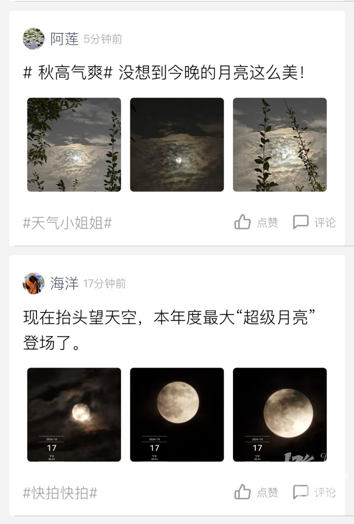你拍到今晚的超级月亮了吗?欢迎来#天气小姐姐#话题下晒一晒。