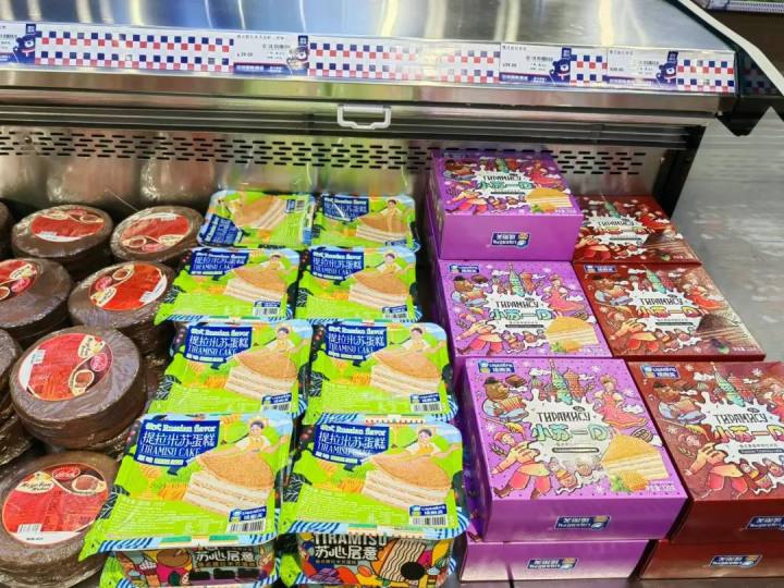 在售卖俄罗斯糕点的冷柜旁边,有顾客在打听关于生产日期的问题,因为店里糕点的生产日期并不是当月的,店员表示是因为进口手续+冷链运输需要一定的时间,最快商品从生产到在这里售卖也需要半个月以上,不过它们的保质期都比较长,所以不需要担心商品变质问题。
