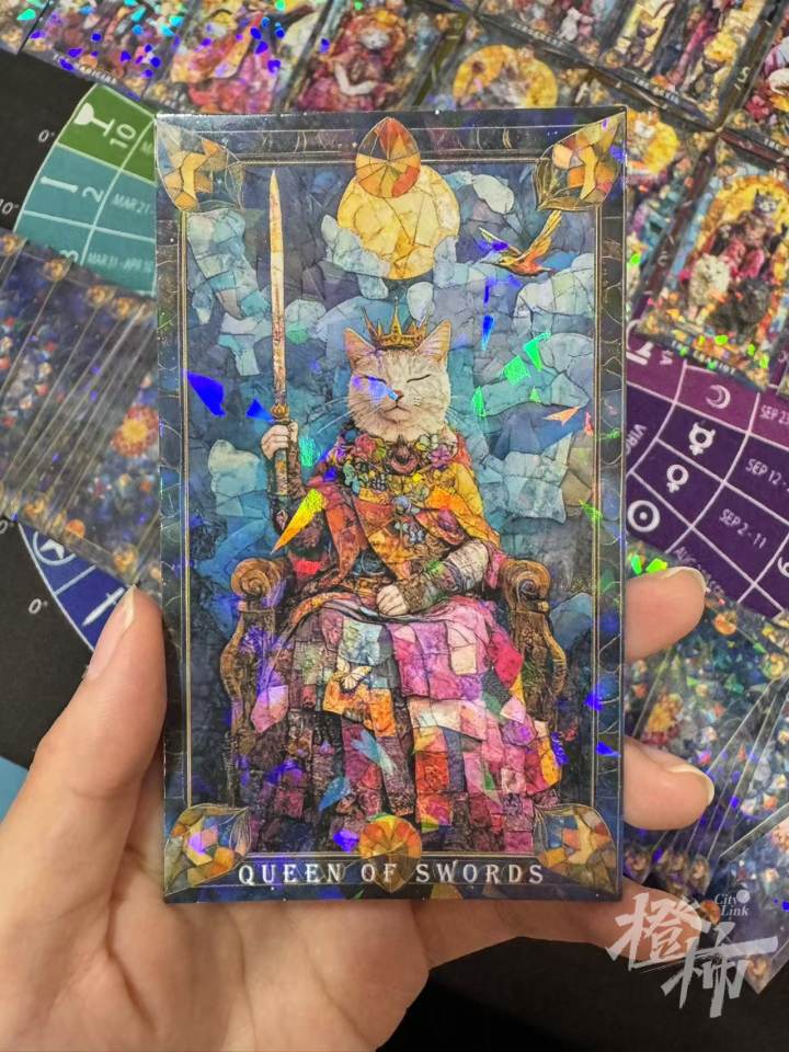 “这张牌是宝剑王后,代表着理智与冷静,这是追求偏财运的重要品质,在投资或寻求财务增长的过程中,能够保持冷静的头脑,不被情绪所左右,做出明智的决策,是取得成功的关键。”看完AI解读后,摊主“时语疗愈占星师张易鸿”继续补充说,“你看她手持宝剑,也是鼓励你勇往直前。”