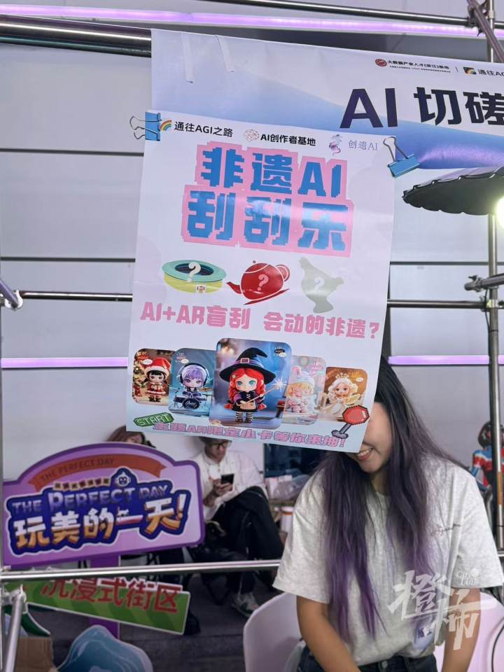 现场共有106个摊位,摊主都是AI爱好者,带来了他们的“AI+”产品,有非遗AI刮刮乐、AI 3D打印、AI视频转绘、AI 量化交易,AI产品设计等等,十分贴近日常,让大家在互动中感受AI的魅力。