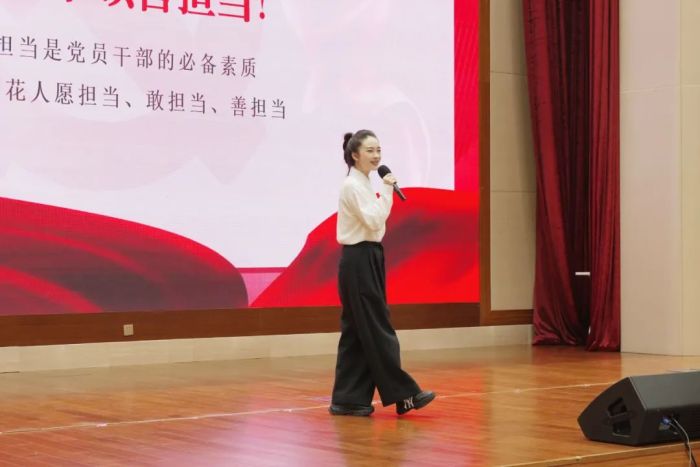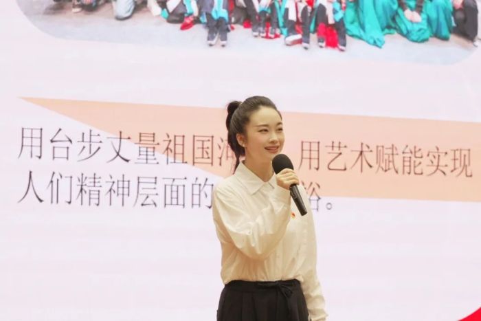 谢婵以《文化立强国,百花落万家》为题,讲述了支部党员通过学思想、勇争先、谱新篇践行新时代使命,小百花人立足时代需求,勇担文化使命,在机遇和挑战中深耕文化自信,用艺术赋能共同富裕,在文化交流、文化传播、多元跨界合作中,展示越剧艺术魅力,在推进文化强国建设的新征程中,凝聚起自信自强、守正创新的强大精神力量。
