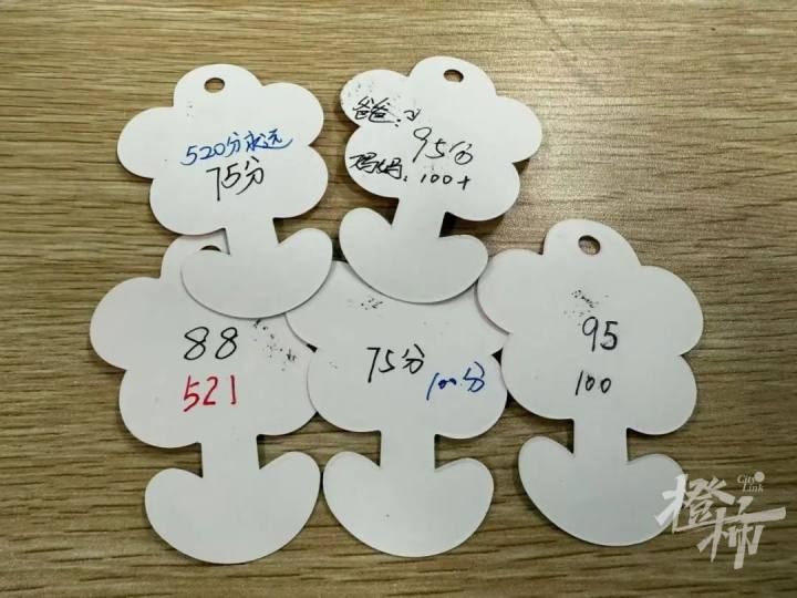 她在家长会之前,也让班上的孩子给自己的妈妈打了分,“每个孩子都给妈妈打了满分,还有几个男生给妈妈打了520分,还有5201314分的。”