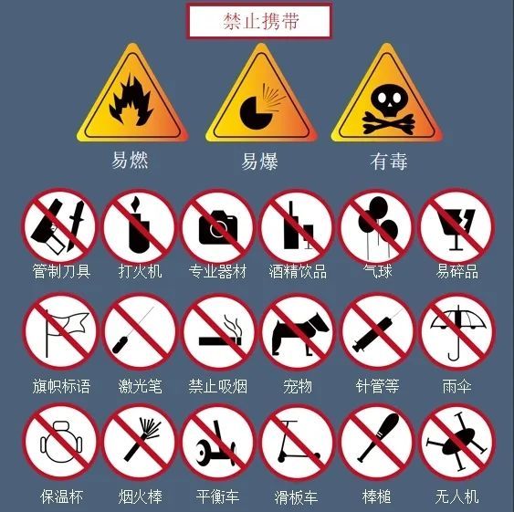 (6)演出现场禁止携带旗帜、旗杆、自拍杆(包括任何伸缩旗帜及旗杆)、横幅、条幅、灯牌、灯幅、违禁食品、管制刀具、针管、打火机、冷焰火、宠物、任何饮料、含酒精制品、航拍飞行器、大型行李箱、长柄雨伞、照相机、充电宝、激光笔、保温杯、平衡车、滑板车、棒槌、无人机等物品进场,具体以现场公告为准;