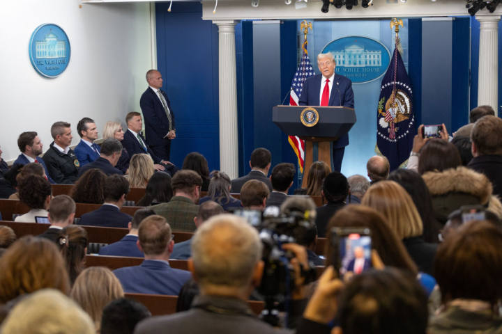 1月30日,美国总统特朗普在首都华盛顿的白宫出席新闻发布会。新华社记者胡友松摄