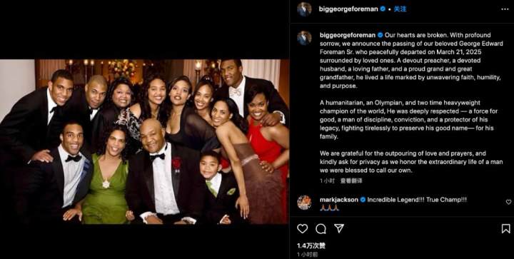 美国重量级拳击传奇人物乔治·福尔曼于当地时间3月21日去世,享年76岁。