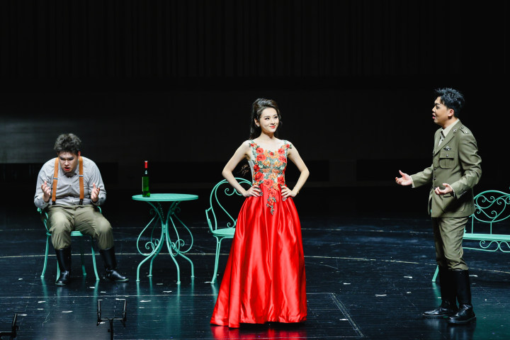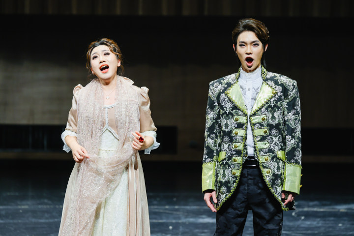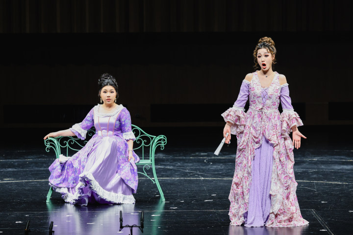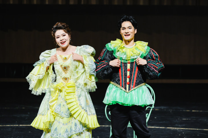 当晚,歌剧学院学生曾彤与郑阳富精彩演绎莫扎特《魔笛》的《帕吉诺,你已和我定了终身?》,以诙谐对话拉开整场演出的序幕。随后,李子懿与郑心烨在《女人心》的《啊,姐妹你看》中,以戏谑唱腔展现姐妹对爱情的微妙试探;陈艺田、易浩扬与张丰韬演绎了《爱之甘醇》中《爱情的灵药!你是我的!》,以轻快的节奏与幽默的对话展现乡村青年内莫里诺的痴情;郑慕希与张阳辉则挑战威尔第《茶花女》中的经典选段《告别巴黎》,以沉郁而克制的声线刻画阿尔弗雷德与维奥莱塔的诀别之痛。