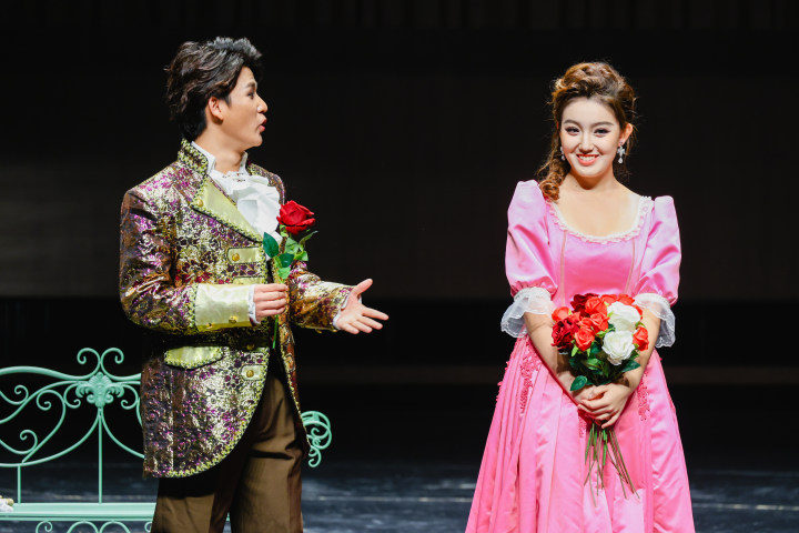 作为此次音乐会中年龄最小的学生,多莉雅在孙秀苇的指导下展现出超越年龄的艺术成熟度。在莫扎特《唐璜》的《让我们携手同行》中,她以清澈灵动的嗓音精准捕捉村姑采琳娜的纯真与悸动,与周业超的浪子形象形成鲜明对比;而在多尼采蒂经典咏叹调《姑娘的秋波》中,她以轻盈的花腔与灵动的舞台表现力,再现剧中诺丽娜的狡黠与魅力;在《唐·帕斯夸莱》的《我们已经准备好了》中,她以活泼俏皮的演绎将喜剧角色的机敏与幽默展现得淋漓尽致,高音部分的爆发力更是惊艳全场。孙秀苇评价其“拥有与生俱来的舞台感知力,是新生代中极具潜力的歌者”。