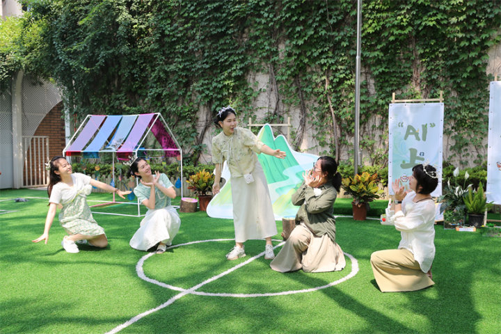 首先登场的是精彩的魔法森林童话剧《蒲公英的奇幻之旅》,剧中蒲公英种子在风的吹拂下踏上寻家之路,途中虽遇艰难险阻,但无人机小精灵的出现为它们带来转机。演出过程中,哲学组的娜娜老师巧妙介入,引导孩子们思考:若身处蒲公英种子的境遇,是选择跟随无人机小精灵前往安全之所,还是继续坚守原地?这一充满想象力的问题激发了孩子们的思考热情,让他们带着好奇与思考继续沉浸于开幕式后续精彩环节。