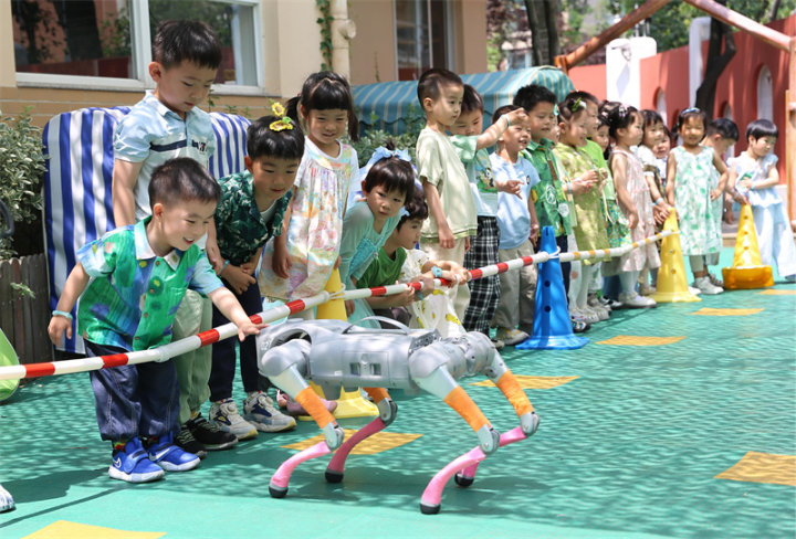 开幕式的最后,全场 “自然精灵” 们与宇树科技机器狗、无人机、小雏鹰一同欢腾起舞,共同奏响一曲和谐美妙的植物魔法乐章,而后各个年级组与机器狗进行了亲密的互动,机器狗的各种炫酷的本领赢得了孩子们的阵阵欢呼声,为开幕式画上圆满句号。
