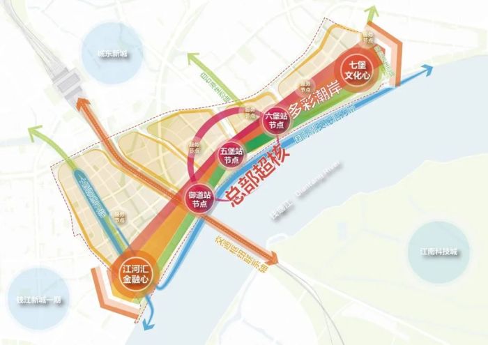 自2017年启动建设以来,钱江新城二期以“未来总部湾·滨水新潮岸”为定位,不断刷新城市封面。以江河汇金融心为例,这里已聚集平安、西子国际、菲诺等企业总部项目;五堡TOD、六堡TOD等超核项目则聚焦上市企业总部和新质生产力科创总部等。