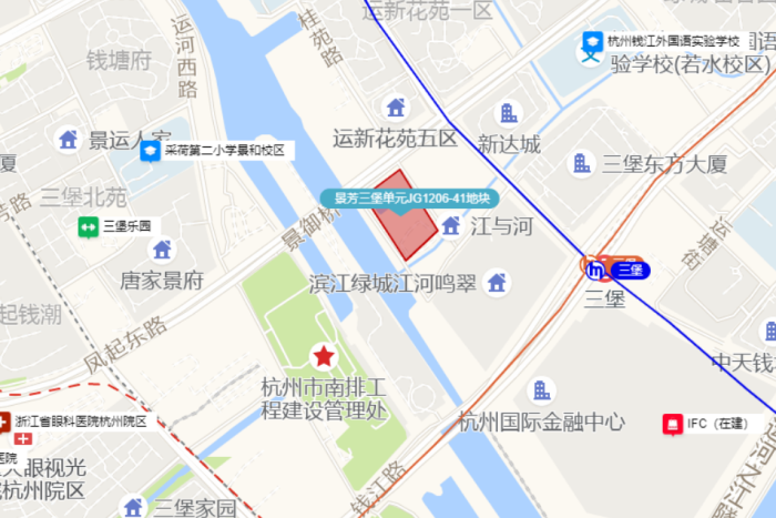 地块信息显示,这块地出让面积13921㎡,容积率3.5,总建筑面积48723.5㎡,限高100米;地块位于江河汇区域,东侧紧邻京杭大运河,南面为平安、西子国际、菲诺总部项目,距离在建的杭州国际金融中心(IFC)仅500米,区位优势显著。
