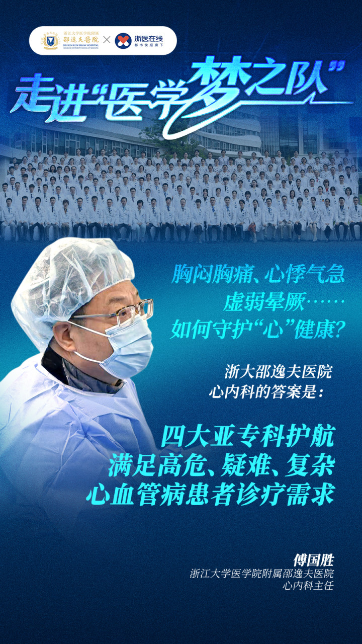 如何呵护心血管健康?浙江大学医学院附属邵逸夫医院(下称:浙大邵逸夫医院)心内科在学科带头人、科主任傅国胜教授的带领下,以挽救高危、疑难、复杂心血管病患者为己任,以国际先进诊疗理念为引领,孜孜以求,不断攀登医学高峰。