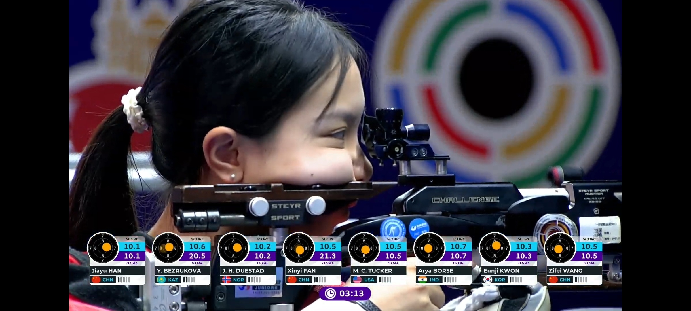 资格赛中,王子菲就以637.9环的成绩打破该项目资格赛世界纪录,超原纪录1环。这一成绩也打破世界青年纪录、全国纪录。另一位浙江姑娘韩佳予以634.2环的成绩排名第6晋级决赛。一同晋级决赛的还有巴黎奥运会冠军韩国选手潘孝珍,这下决赛精彩了!