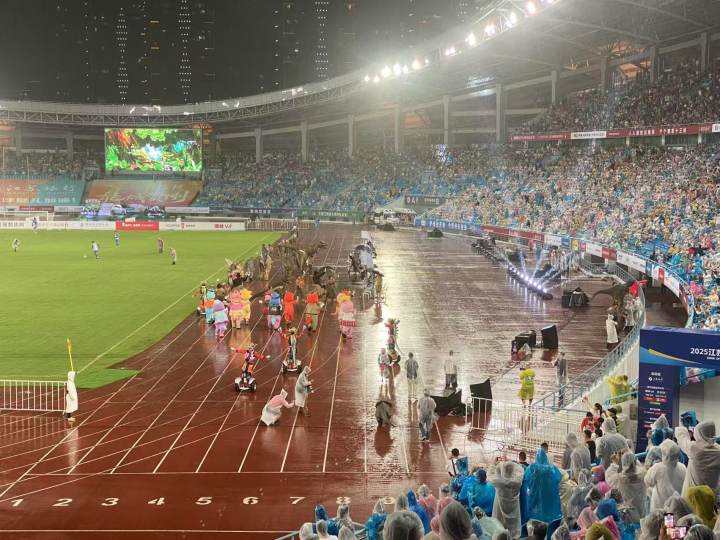 比赛结束,雨还在下。