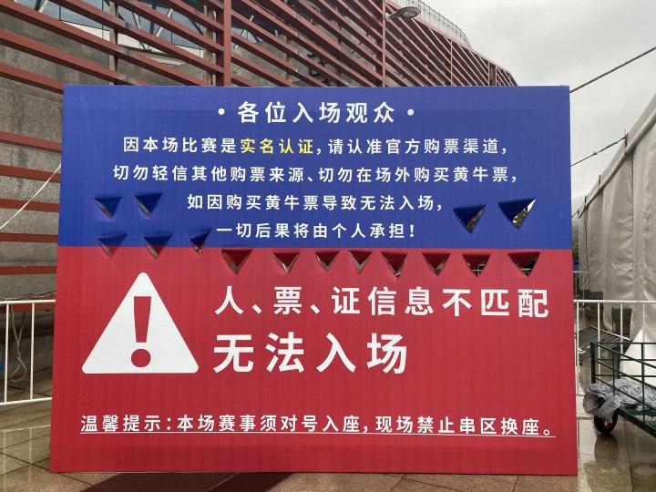 进场前,现场工作人员要求进场的每一个人检查身份证,刷票,一人一票实名入场。如果携带了双肩包,也要全部检查。