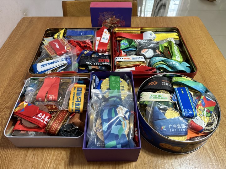 李四跑马拉松12年来收集的奖牌(受访者供图)
