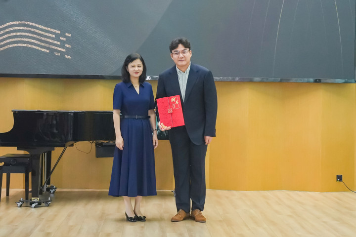 发布会上,备受瞩目的“90后”著名指挥家钱骏平接下浙江音乐学院颁发的聘书,正式受聘为浙江音乐学院室内管弦乐团艺术总监。