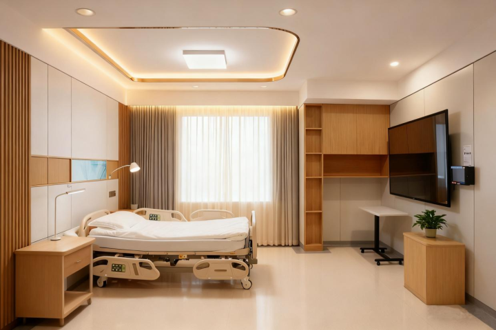 国际医疗部位于医院2号楼5楼,共设41张床位,含双人间、单人间和套房,以家庭化、一体化、适老化为设计理念,融合医疗功能与人文关怀。除先进的医疗设备和智能系统外,更配备了会客区与商务会议室,实现了诊疗、休闲与商务功能的有机融合。