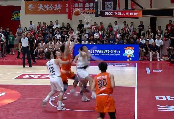 台州队12号徐梓凯随后二罚一中加一个三分球,将比分追至45:54。