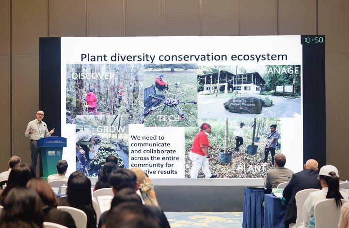 新加坡植物园森林与树木研究部主任Chuck Cannon以新加坡“自然之城”愿景为例,展示植物园如何通过150余年的标本科学、长期生态监测与恢复实践,连接就地与迁地保护、科研与公众参与。他提出,保护韧性源于“战略互补”,而非单一机构努力,这一模式为高密度城市的生物多样性保护提供借鉴。