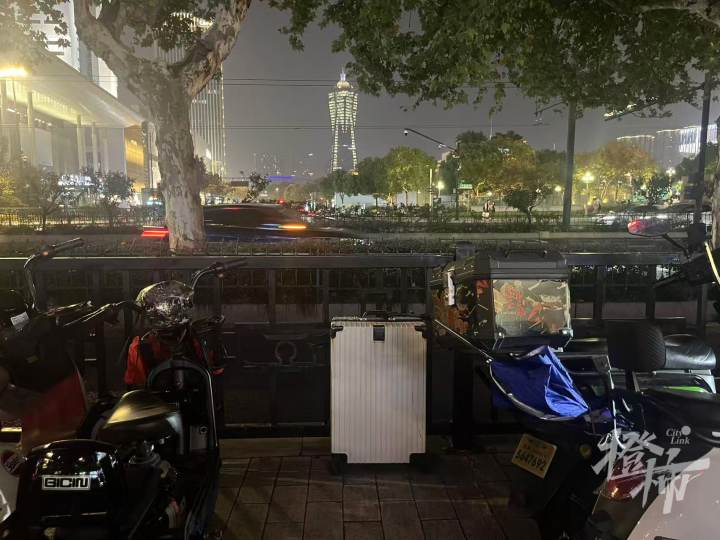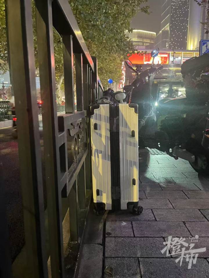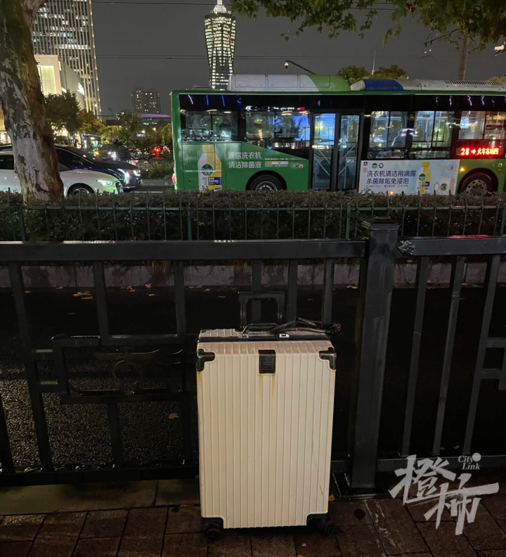 昨天(11月14日)晚上,橙柿记者赶到现场,调查了一下这只行李箱的来龙去脉。