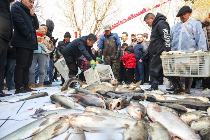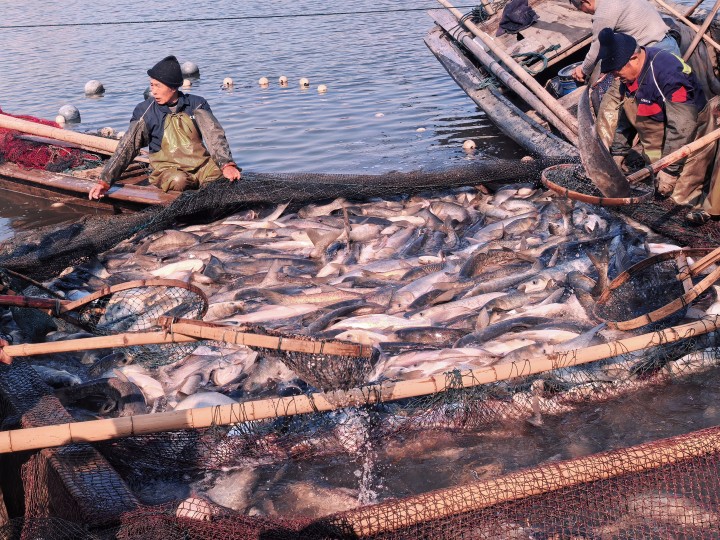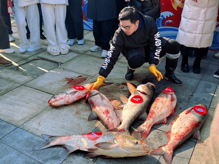 鲢鱼、青鱼、草鱼、鲫鱼、鳊鱼、包头鱼……今天天气不错,浙江工业大学之江学院从学校内的早湖,捞起两万多斤鱼,请全校师生和校友吃鱼。