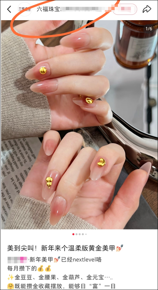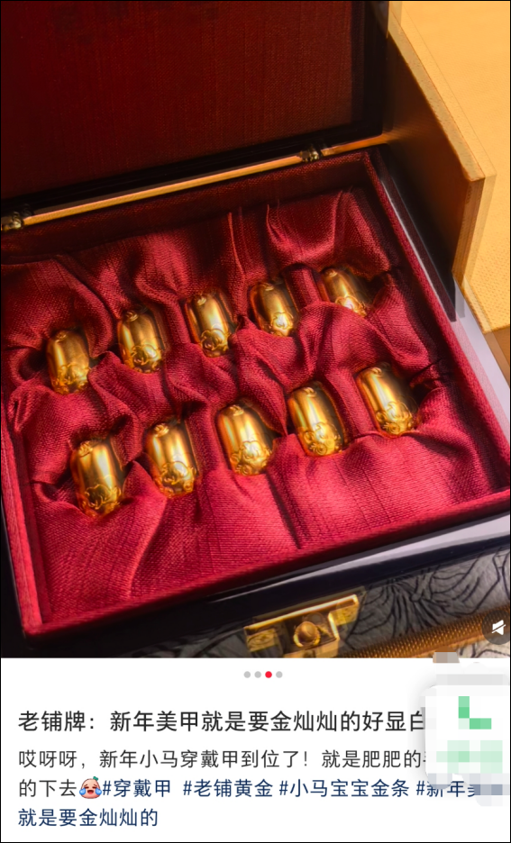 六福珠宝、周六福等品牌店铺的店员,也将金饰用于美甲“宣传”,在社交媒体进行营销。