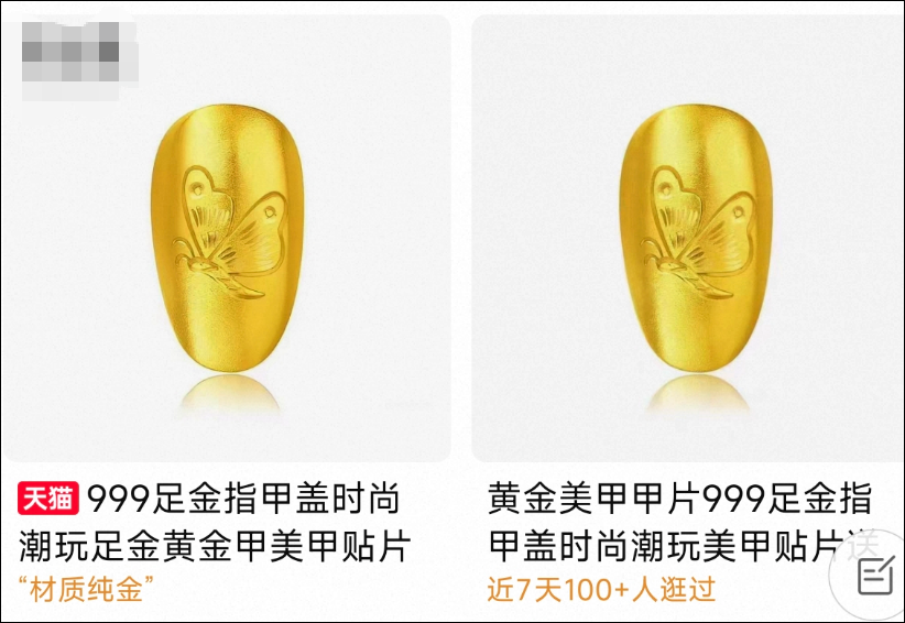 周大福等头部品牌的小件金饰,甚至老铺黄金的金条都成了美甲店的“高端原料”,有消费者表示,愿意花数千元、上万元打造“黄金甲”。