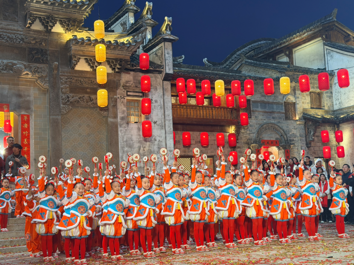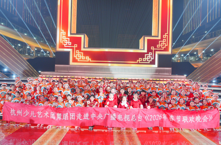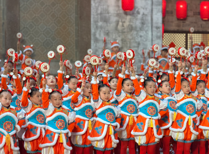 刚刚,在义乌分会场的舞台上,出现了一群手拿拨浪鼓的杭州娃。孩子们的童声清澈,舞姿灵动,向全国观众献上了新春的第一声祝福。