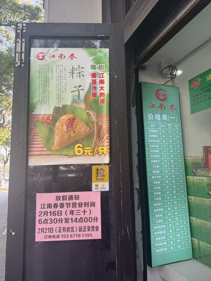 江南春创建于1958年,迄今为止已有68年的历史,名字来自唐代诗人杜牧的《江南春》一诗。它的前身是杭州永新粮食制品厂,一直到现在都留存着老国营的风格。这个春节,解放路店除夕那天下午2点提前关门,初一至初四放假,正月初五(2月21日)起正常营业。