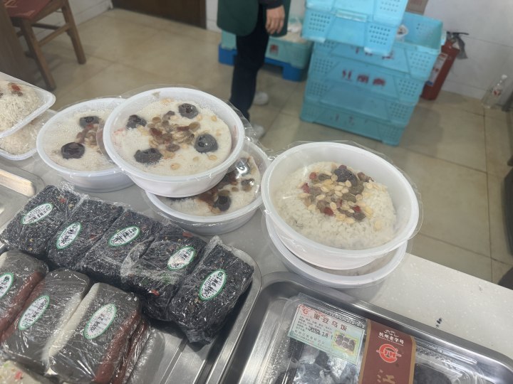 “除了定胜糕,店里的大福糕、八宝饭也都卖得很好,像我们这种新鲜制作出来、没有经过速冻的八宝饭如今已经不多见了。”春节前的一个下午,杭州老底子糕点店江南春的负责人庄志清在解放路店柜台前向记者介绍道。