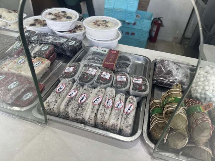 目前店里在售的有三十多种糕点,条头糕、桔红糕、荷花糕等都是常年受欢迎的品类,另外还有一些时令节气特别畅销的,比如春节前后的八宝饭,元宵节的擂沙汤团,清明节里的清明团子、重阳节的重阳糕、立夏乌饭糕等。接手了江南春之后,庄志清也在尝试着开发新品,去年推出的粽子(蜜豆沙粽、大肉粽)反响很好,6元一只,目前每天能卖出200多只。