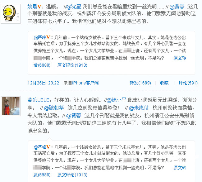 15年前(2010年12月22日),快报公安线记者严峰在个人微博感慨:几年前,一中年女子被杀,有几个好心刑警一直在供养她三个女儿……我们总能在黑暗中找到一丝光明,不是吗?