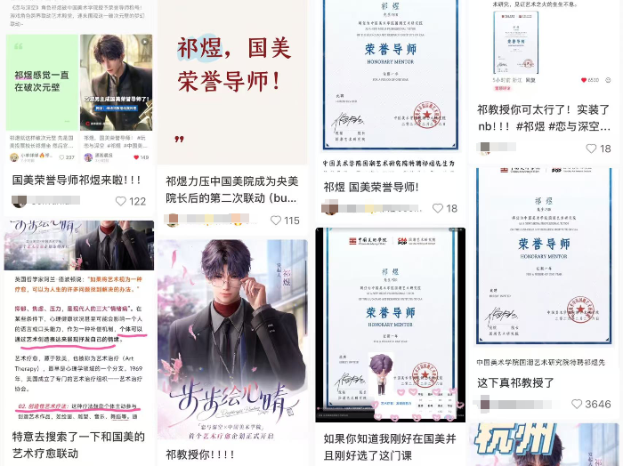 2月27日,中国美术学院国潮艺术研究院正式官宣,聘任热门手游《恋与深空》中的人气角色祁煜担任荣誉导师,这一跨界联动引发了游戏玩家与艺术爱好者的广泛关注,网友表示: “这下是真破次元壁了”。