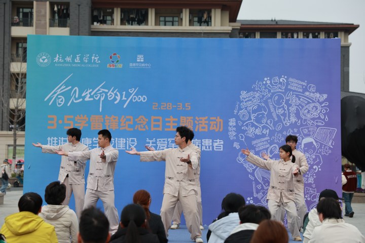 在中午举行的公益宣讲“听见生命的力量”环节,中医养生社的学生们带来了健康养生的太极拳表演、方开则以拼搏的体育精神为患者加油、患者家属及浙江中医药大学的罕见病大学生也先后分享了自己的心路历程。